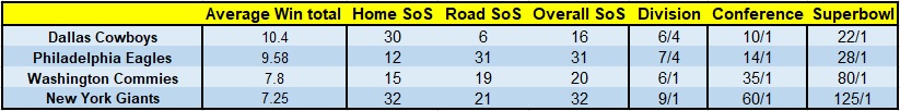 The NFC East is, without doubt, the most inconsistent division in the NFL, a point which is proven by the fact that no team has won the division in back-to-back seasons since the Eagles won it four years in a row from 2001-2004. The bookies seem to think this years Cowboys are the team to buck this trend as they have them as slight favourites to win the division again.