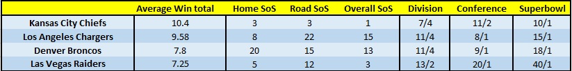 Everything is lining up for it to be the Chargers division this year, but it’s not the first time we’ll have said that. They have an easier schedule and that week 2 TNF matchup between the Chiefs and Chargers should be a cracker and tell us a lot early on.
