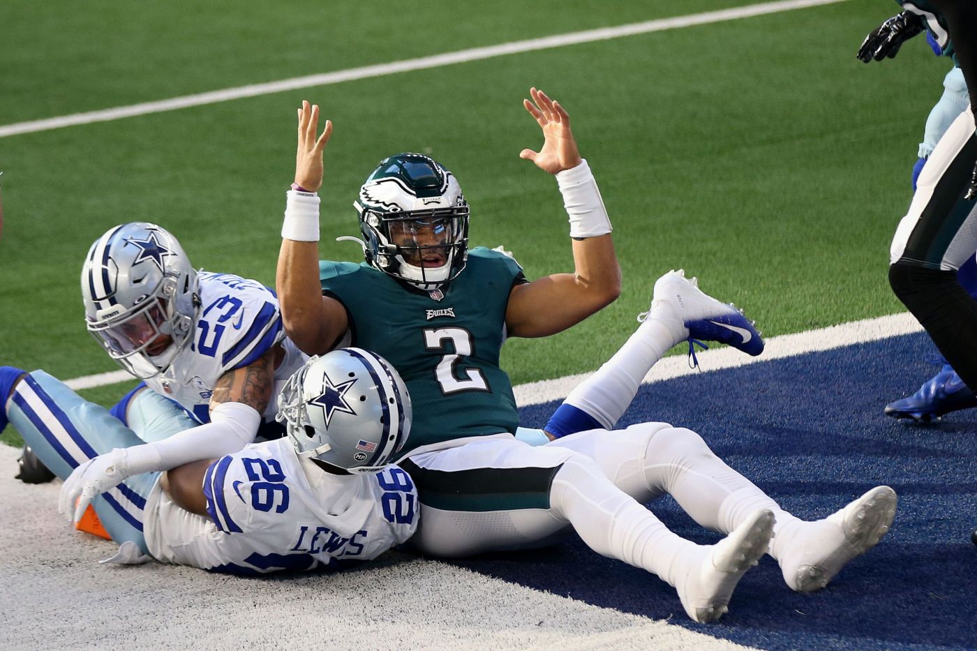 Jalen Hurts is running this offense well, mostly through running, his ability to move the ball on the ground is vital and he’s scored in all bar one game this year, with 6 TDs in total. He’s actually only thrown 4, those coming in two games so it’s safe to say it’s not a standard offense.