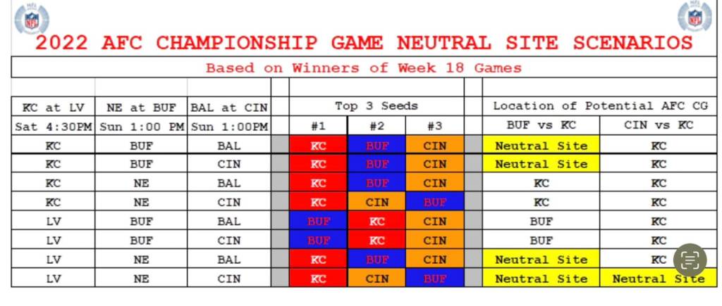 There can be a little movement in the AFC seedings as well, as a Bengals fan I would love to play the Ravens again next week instead of the Chargers, and if the Bengals beat them then the Chargers remain at 5 and the Ravens will be 6th seed. Chargers have said they’ll rest players if the Ravens lose the early game so keep an eye on things there.