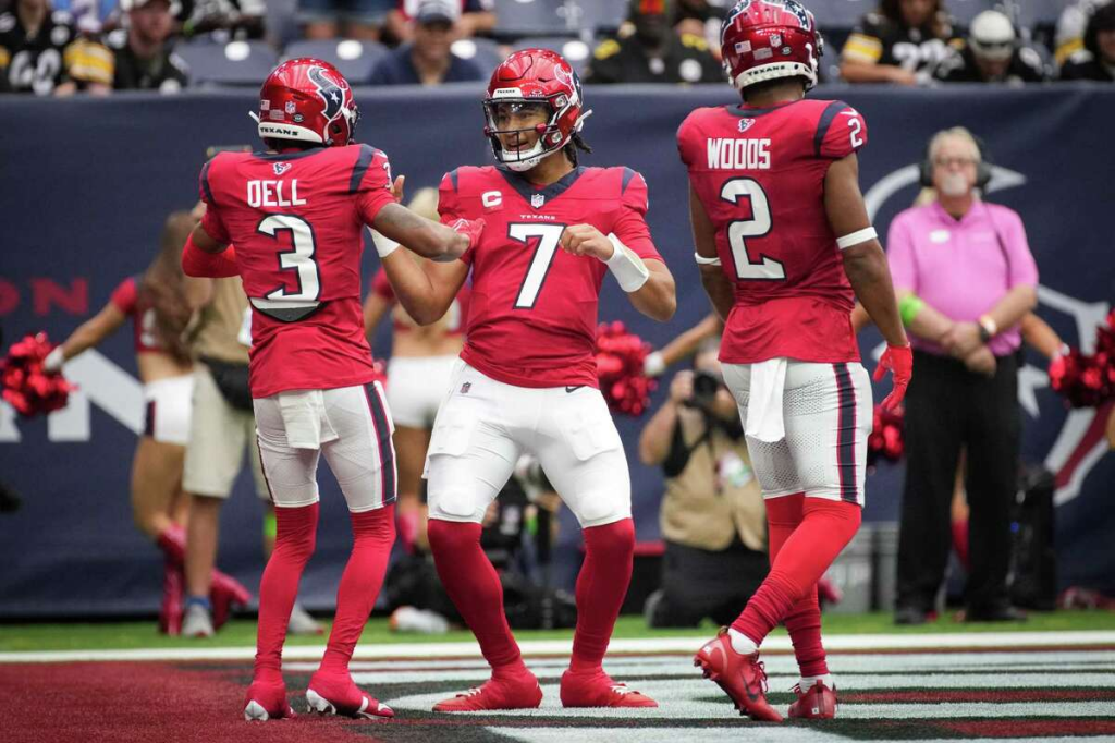 Stroud have been slinging it all over the park and they may have got the run game going last week as well, although the Steelers run d is poop. Stroud has at least 2 passing TDs in his last 3 games and his minimum yards passing has been 242 in week one, he’s settled into the league very well with Tank Dell and Nico Collins proving they can do well with a decent QB. Dameon Pierce had his best game of the early season and will look to step up once more in this one.