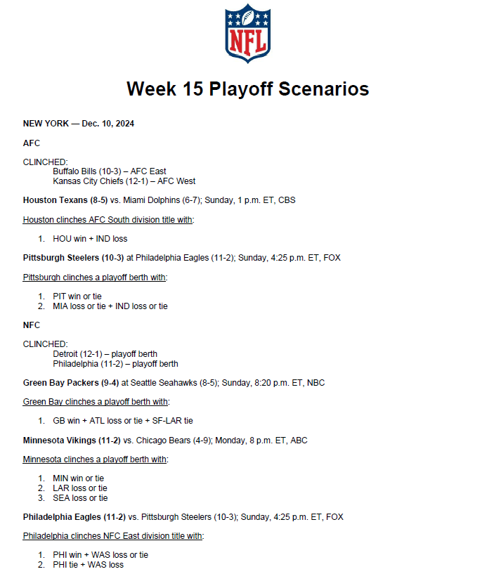 The Dolphins are technically still alive in the wildcard hunt too, the Texans should win the AFC South but do need one or two more results to beat the Colts to that title.